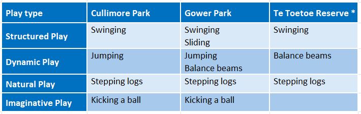 Cullimore Park playground - Gower Park playground - Te Toetoe Reserve playground